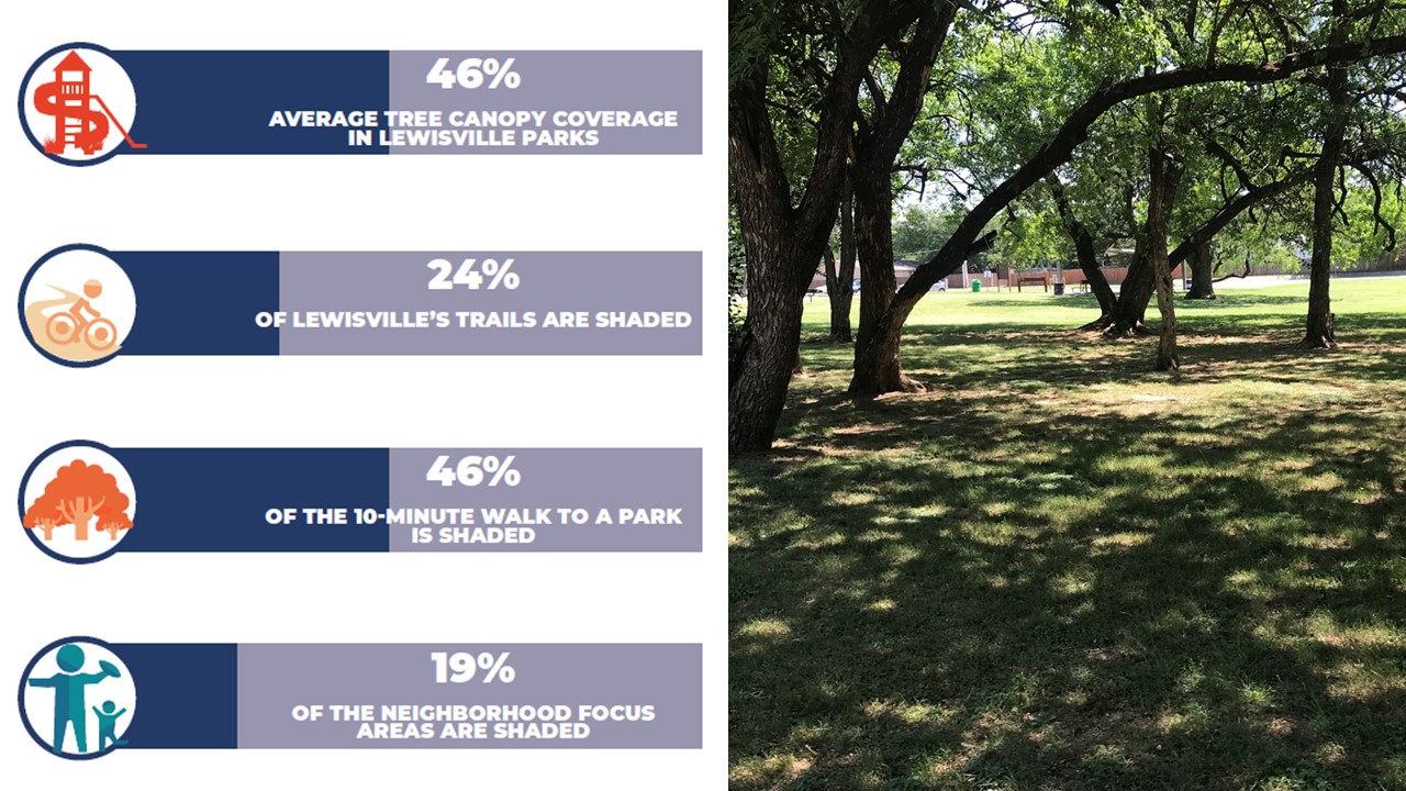 As part of the City of Lewisville Healthy Infrastructure Plan, a tree canopy analysis was conducted to determine areas of the City where tree canopy coverage could be improved, including along trails and walking routes to parks.This project has won multiple awards in 2023 and 2024 for its planning excellence.